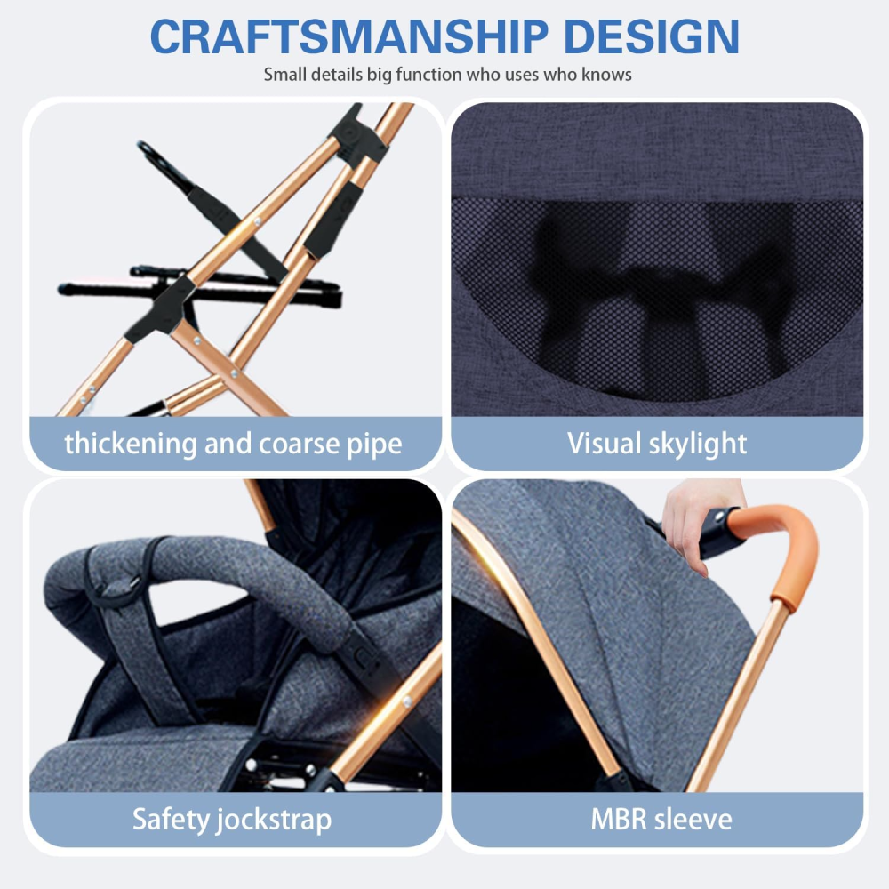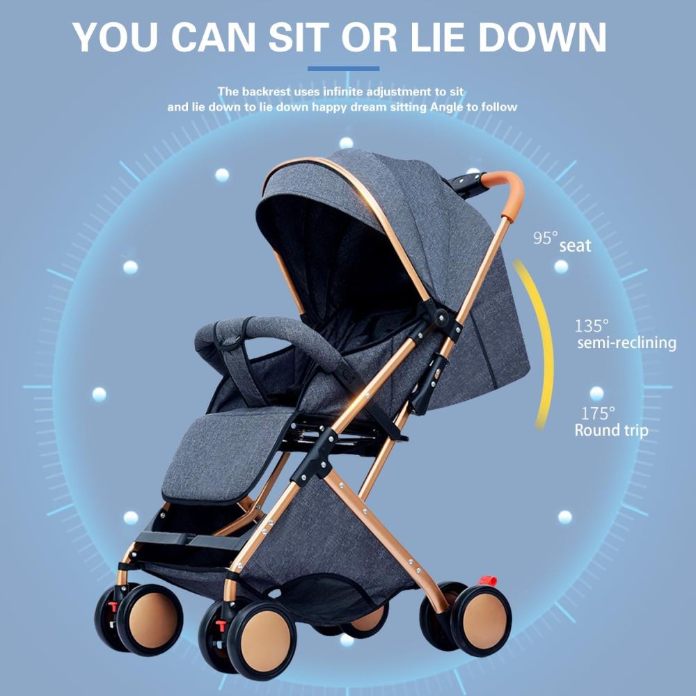 - الميزات: مظلة قابلة للتعديل وطي سريع